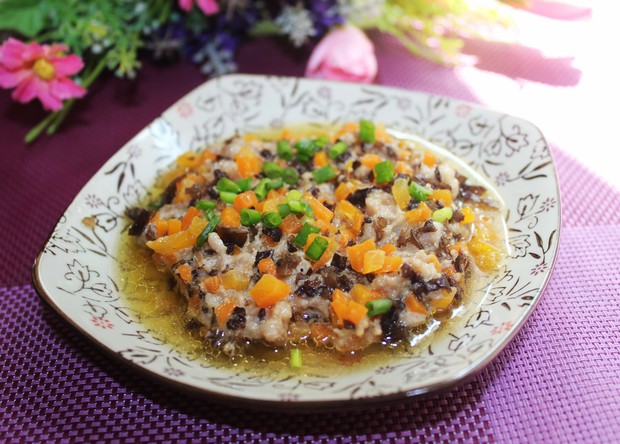 木耳胡萝卜蒸肉饼