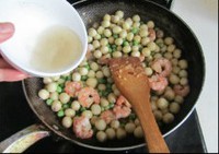 虾仁煸炒变色后加入焯过水的莲子米和青豆一起翻炒