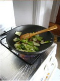 青菜梗会比菜叶耐炒,所以需要先放入锅中鸭胗很咸,这道菜不需要额外放盐