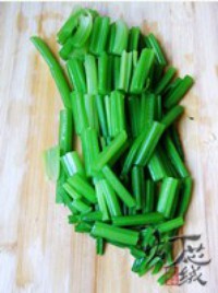芹菜去叶,掰开,洗净,入开水中焯烫一下