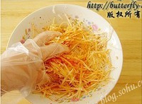 用清水把腌好的白菜冲洗干净,挤干水分