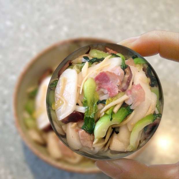 倒入年糕迅速翻炒,年糕稍稍变软既可用盐调味,此时可加少许开水翻炒防止粘锅。