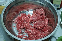 肉馅加一点水和盐搅打