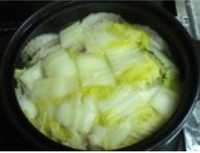 白菜开始出水的时候,将锅盖打开,用筷子向下压一压上面的菜