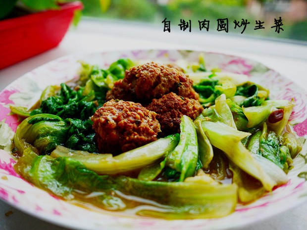 教您自制肉圆炒生菜的家常做法,怎么做自制肉圆炒生菜好吃