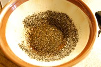 将酱油之外的所有调料放进蒜臼中捣碎至小颗粒状。