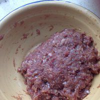 2. 牛肉切碎,放花椒面,胡椒面,酱油