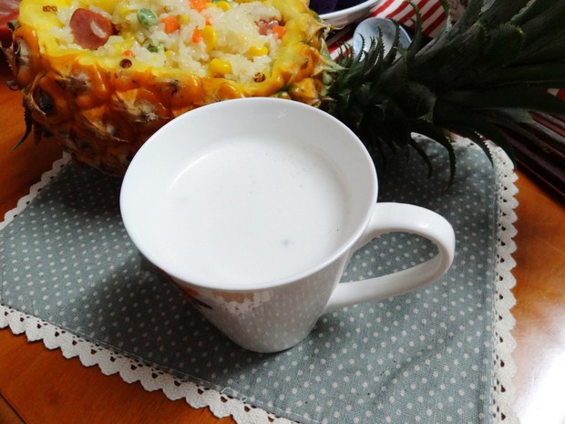 将上述用料全部倒入豆浆机中,选择奶茶模式,按启动键,豆浆机自动运转。
