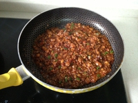 加入豆瓣酱,多少自己看着办,酱有点咸的