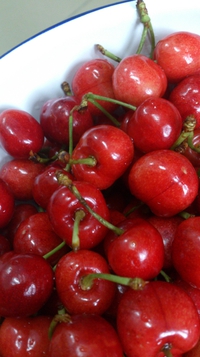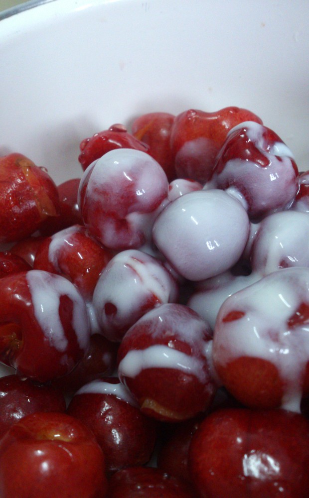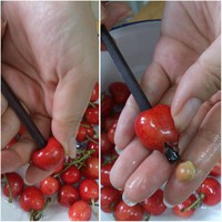 2. 樱桃梗去掉后,用筷子粗头去掉樱桃核