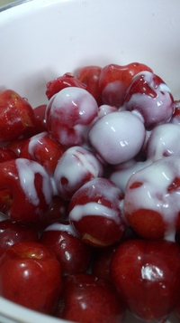 去核的樱桃,淋上蜂蜜和酸奶,酸酸甜甜,呀咪