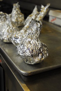 烤箱预热到177度。用铝箔包住甜菜,加入橄榄油、盐和胡椒。45分钟。