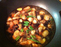 突然想吃红烧肉,无奈没有食材,就用里脊肉代替了。而且到最后收汁阶段因为玩游戏导致肉焦了。。。嘛。。还不错啦