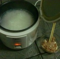 先煮粥,把米洗三遍,加水加至八成满,用电饭锅做的时候记得盖子不要盖紧,要用一根筷子横在锅上面,稍微留一些缝隙,不然会溢出来的。