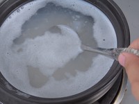 烧制的过程中用勺子不断搅拌,防止粘锅。