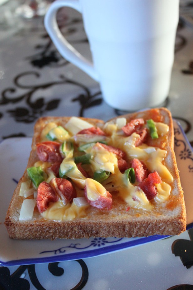 面包片加上厚厚的芝士简直美味,好吃又方便。