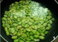 放入蚕豆,翻炒半分钟后撒入少许盐