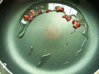 锅中放油,开小火,放入干辣椒段煸出辣味