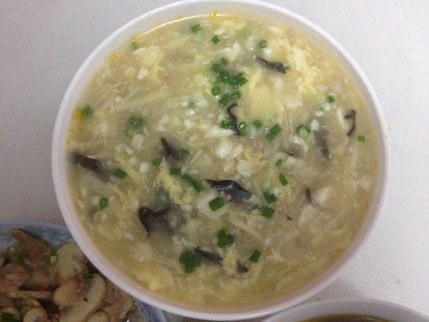 我喜欢再加一个蛋,蛋打碎,用饭勺边搅拌边倒蛋液,出来蛋花状;