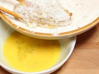 在碗中將雞翼加入辣椒粉,胡椒碎,鹽和料酒。倒入蒜蓉,混合均勻。腌製30分鐘。