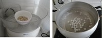 将泡好的薏米放入蒸锅中蒸熟。另起锅加清水煮沸下汤圆煮熟