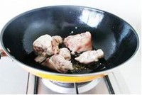 待冰糖溶化后,倒入煮好的猪蹄,不断翻炒上色