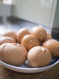 将鸡蛋壳轻轻敲碎,目的是方便入味。