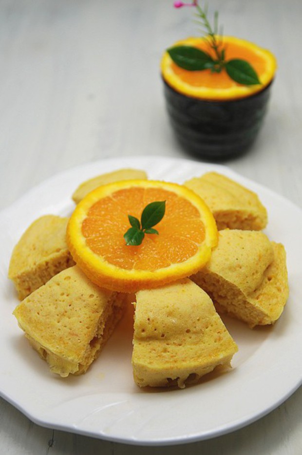 某天想用香橙做点什么,就联想起橙味蛋糕,然后结合着微波炉版发糕做法,一中一西,诞生了这个简单、神奇、橙味浓郁、中式风格的香橙发糕。