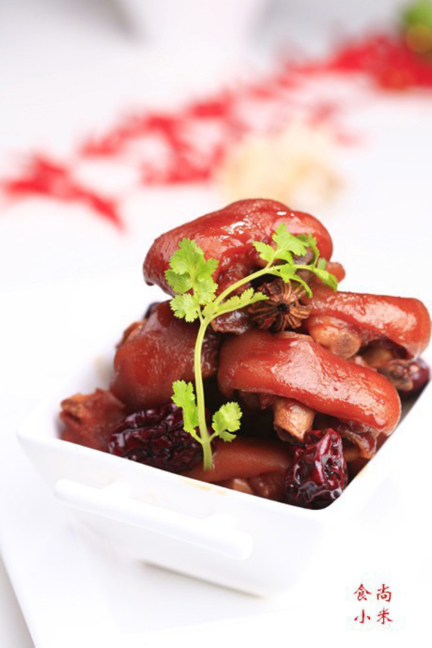 老规矩大年三十一定要吃猪手------过年要吃猪蹄,红烧卤制均可,寓意“发财就手”,希望全家都发财。现在国家不提倡吃“发菜”了保护环境啊,要不放些发菜名字就更贴切。