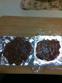 铺锡纸,放肉馅上去,蒙上一层保鲜膜,用擀面杖擀成薄片。我这个擀的不是很美貌,所以出来的肉脯长相也比较奇怪。