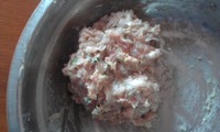 将瘦肉跺烂,加入盐、淀粉、糖做成肉胶备用