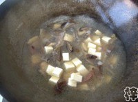 4. 待煮开后加入豆腐,豆腐不宜过早放入,因为在翻炒过程中易碎,加了汤就保险多了,呵呵