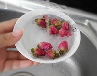将干玫瑰花用清水冲洗一下,洗掉表面的尘土