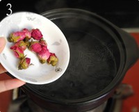 锅中放600ml清水,煮开后,将玫瑰花放进去