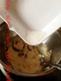 取一小勺冷藏后稍硬的奶酪糊,双手搓成2CM左右的圆球状