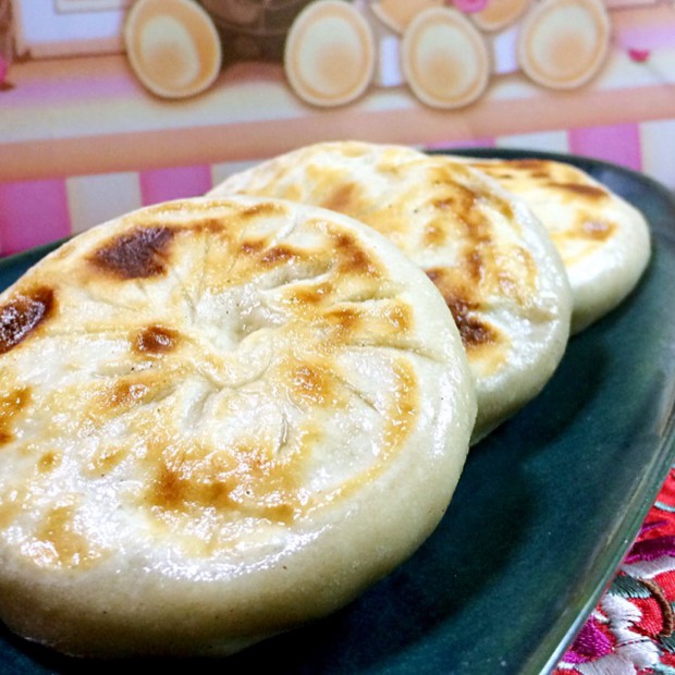 再来回翻着烙一会儿,当小饼鼓气了,就熟啦!可以吃啦~