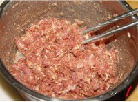 将腌好的肉馅放入,搅拌均匀,放入味精和香油调味。(绞肉馅用筷子不好搅拌,下手吧!)