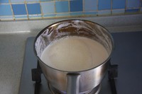 冷却到80度以后将用一点点温水融化好的内酯快速倒入锅中,搅拌一两圈即可,盖上锅盖,静置20分钟。