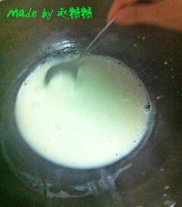 用些许热水冲开椰浆粉,并加入1勺盐