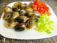 将文蛤洗净,西红柿切丁,芹菜切碎
