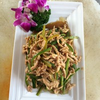 将里脊肉改刀成丝、码味上浆,(盐、味精、鸡精、生抽、料酒、白糖、)少许适量就好!在适量加入水淀粉一起码味,最后放明油(花生油)以便于肉丝之间的分离!备用