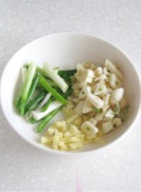 酸白菜先在水中泡半小时后切成细条,再在水中泡半小时,用手挤干水分
