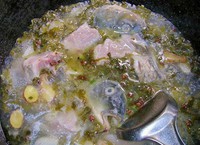 起锅将泡辣椒碎连油一同泼入煮酸菜鱼的锅中