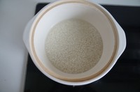 砂锅底部及内侧涂上油,倒入大米,加水没过大米0.5厘米左右,中火煮开,转小火焖煮。