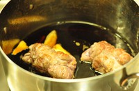 溏心蛋的卤汁里面加生姜,猪肉放入烧开后转小火一小时,如卤汁太少可适量加水。