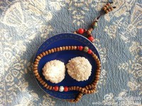 调羹沾点湿的生粉,取适量肉糜,弄成球。