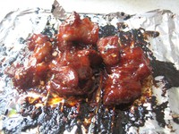 烤箱预热,200度左右开烤,时间具体我也没算...中途帮他们翻翻身,临末了再涂上薄薄一层叉烧汁一层蒜泥再烤个十分钟,再取出刷上一层蜂蜜再烤5分钟。大功告成!事实说明,蜂蜜不能太造假,因为高温流下来的蜂蜜会黑掉。。。。后面加就可以避免