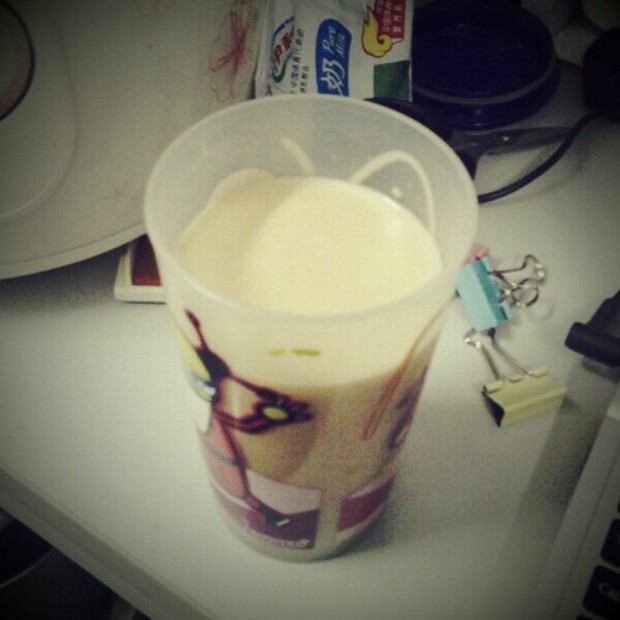 去年屯的雀巢醇品实在是太难喝,喜欢喝奶茶的瘸腿病号又跳不到Coco去,于是自己在宿舍理由手头的食材做实验吧~发现牛奶煮开加方糖可以去腥!