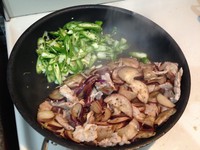 所有食材混合均匀,下入葱,鸡精,入清水少许,闷半分钟.