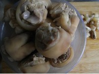 1. 食材:猪蹄。(横着斩断,像脚圈)